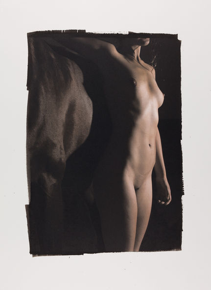 In this piece, light pushes to the front a powerful female form with the horse playing a solid supporting role. The Lusitano’s noble presence merges with the silhouette of the female figure, evoking unity and reliability. I express in this composition the horse´s unique loyalty of spirit to carry us into adventure, war or sport, giving us the boldness to conquer all when we are paired with the horse we trust.